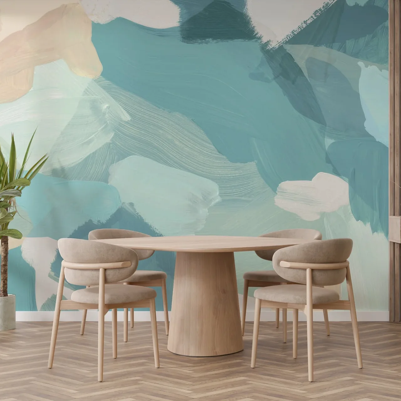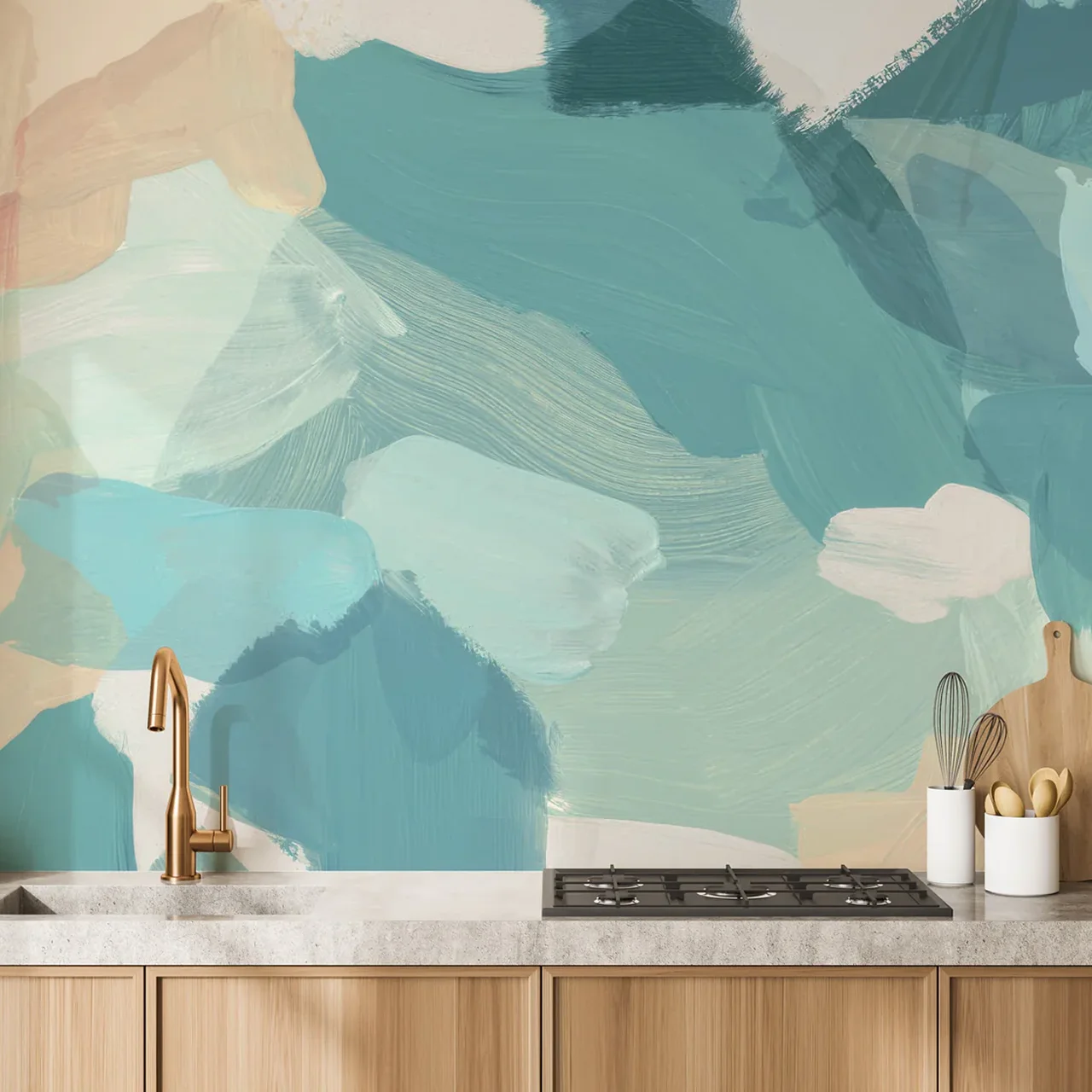 Kitchens are high-humidity, high-mess areas. Standard wallpapers peel or stain easily. Our Abstract Brushstroke Wallpaper is engineered for the heart of your home:
