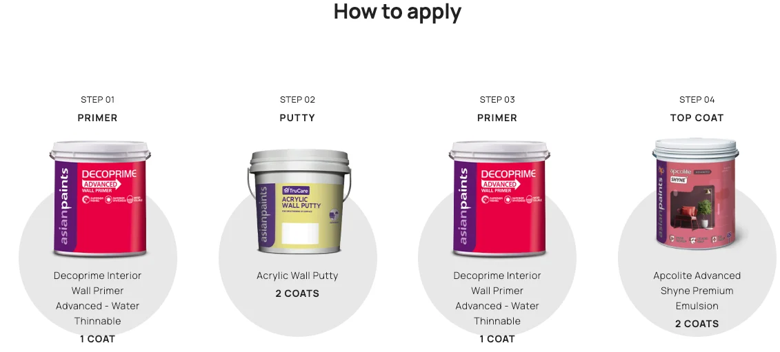 - Priming: Apply 1 coat of Asian Paints TruCare Interior Wall Primer. Priming is crucial for adhesion and uniform sheen.