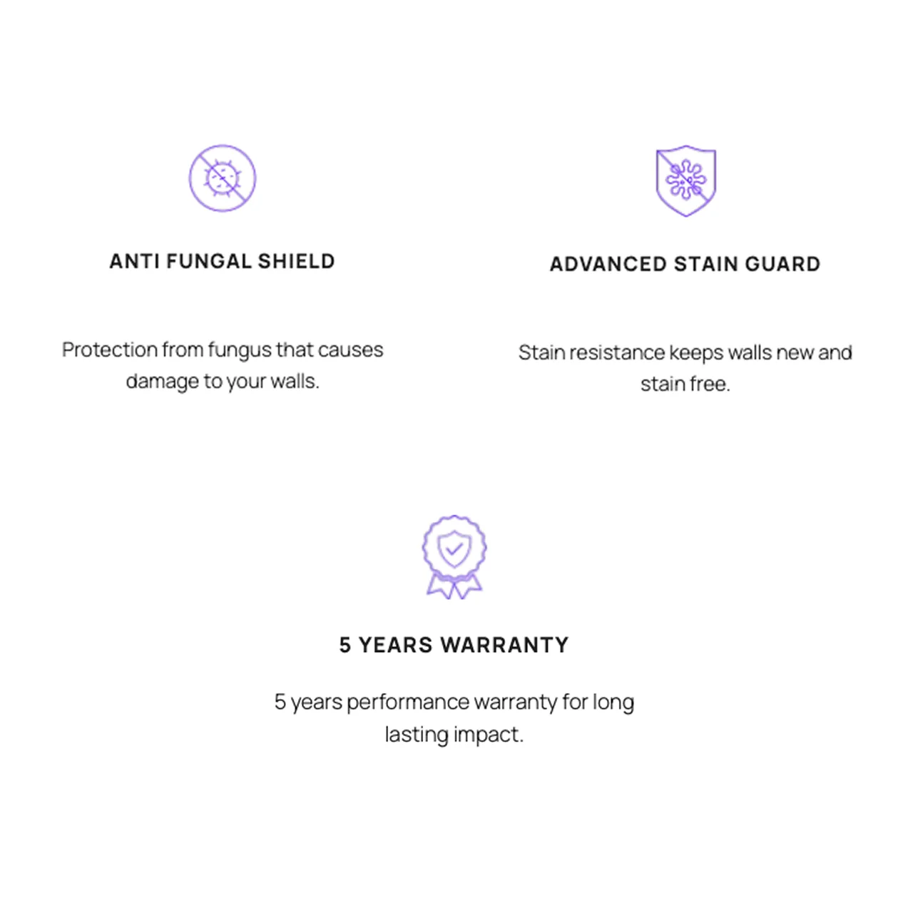 • Anti-Fungal Properties: Protects the paint film from black spots and fungal growth in areas with moderate humidity.