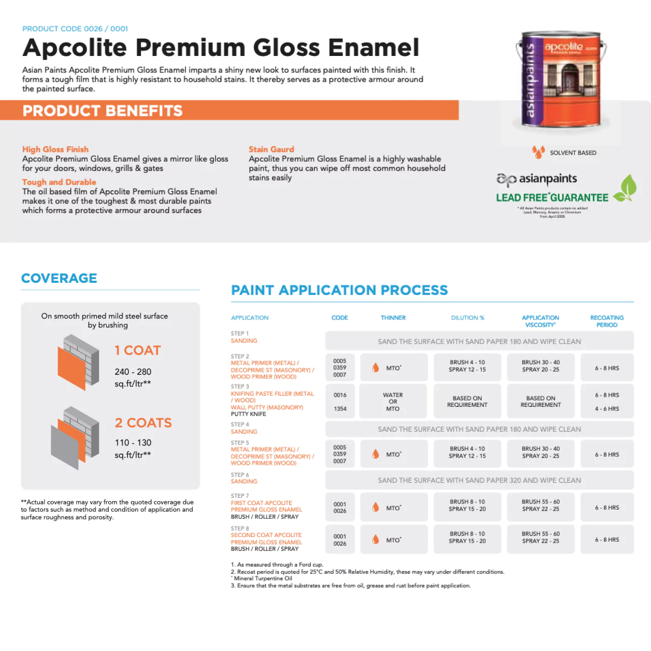 Technical Specifications: Asian Paints Apcolite Premium Gloss Enamel