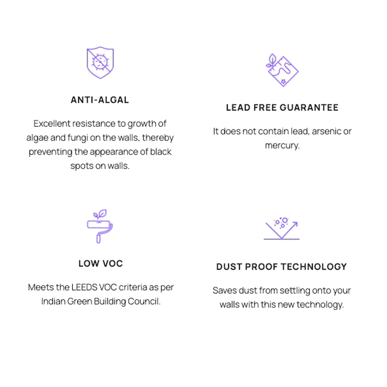 - Better Hiding: Its rich consistency covers minor surface undulations and plaster defects better than economy emulsions.