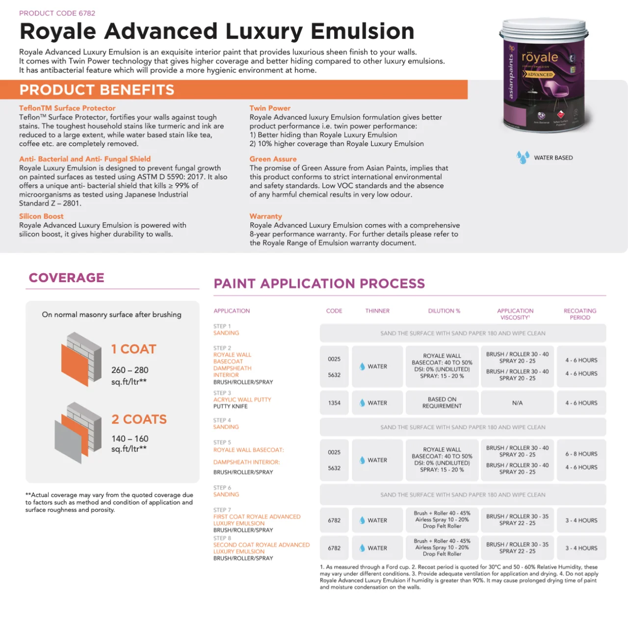 Technical Specifications: Asian Paints Royale Advanced Luxury Emulsion