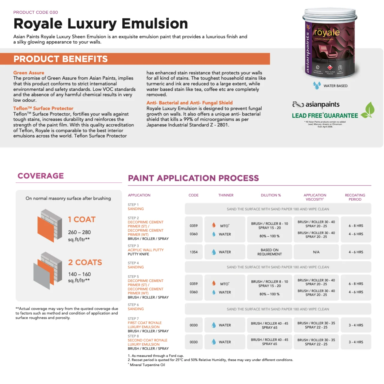 Technical Specifications: Asian Paints Royale Luxury Emulsion