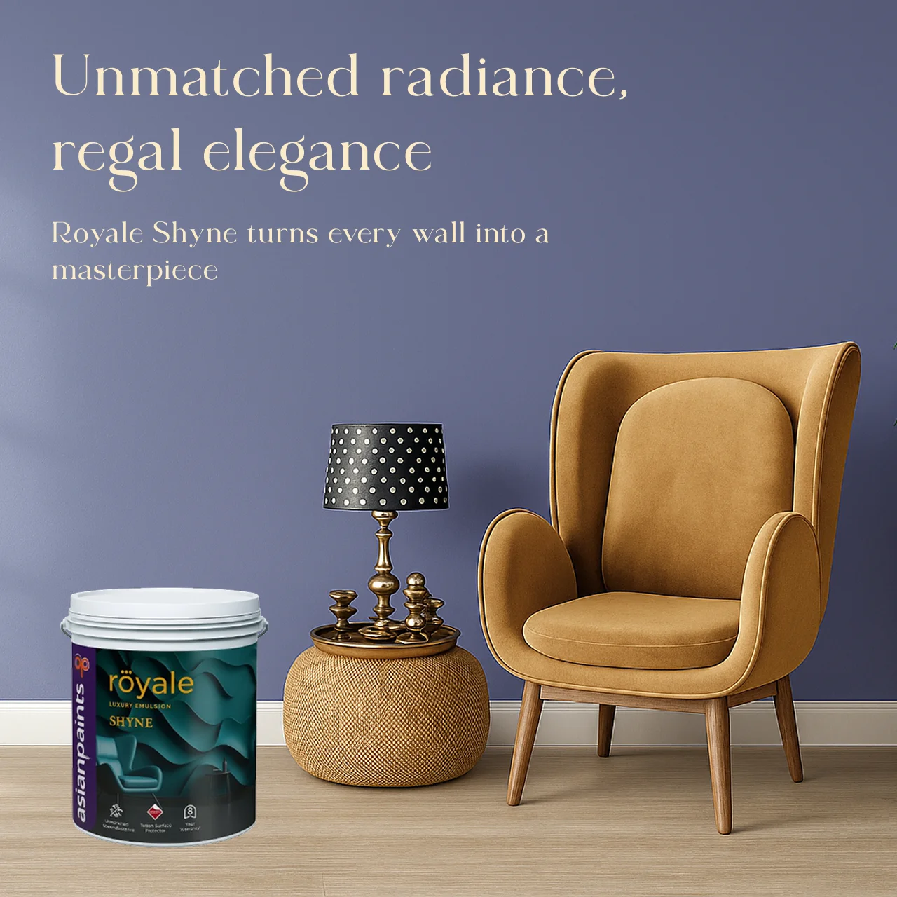 Asian Paints Royale Shyne luxury Interior Emulsion Paint crafted to deliver a diamond-like sheen and bring a touch of radiance to your walls.