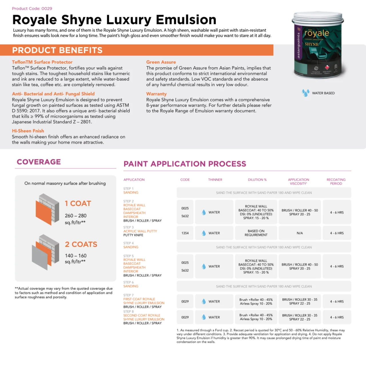 Technical Specifications: Asian Paints Royale Shyne Luxury Emulsion