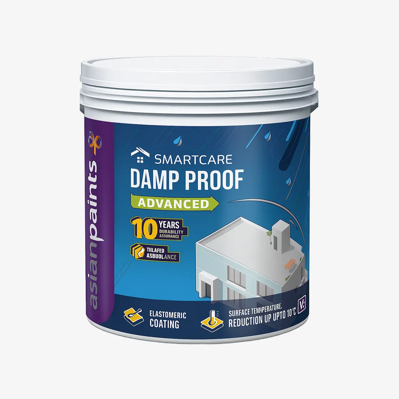 Leaking terraces and damp exterior walls destroy the structural integrity of a home. Asian Paints SmartCare Damp Proof Advanced is the premium, fiber-reinforced elastomeric waterproofing coating designed to provide the ultimate protection against rain and heat. Unlike standard waterproofing chemicals that can crack over time, this advanced formula creates a thick, durable, and seamless membrane that stretches with the building’s movement.