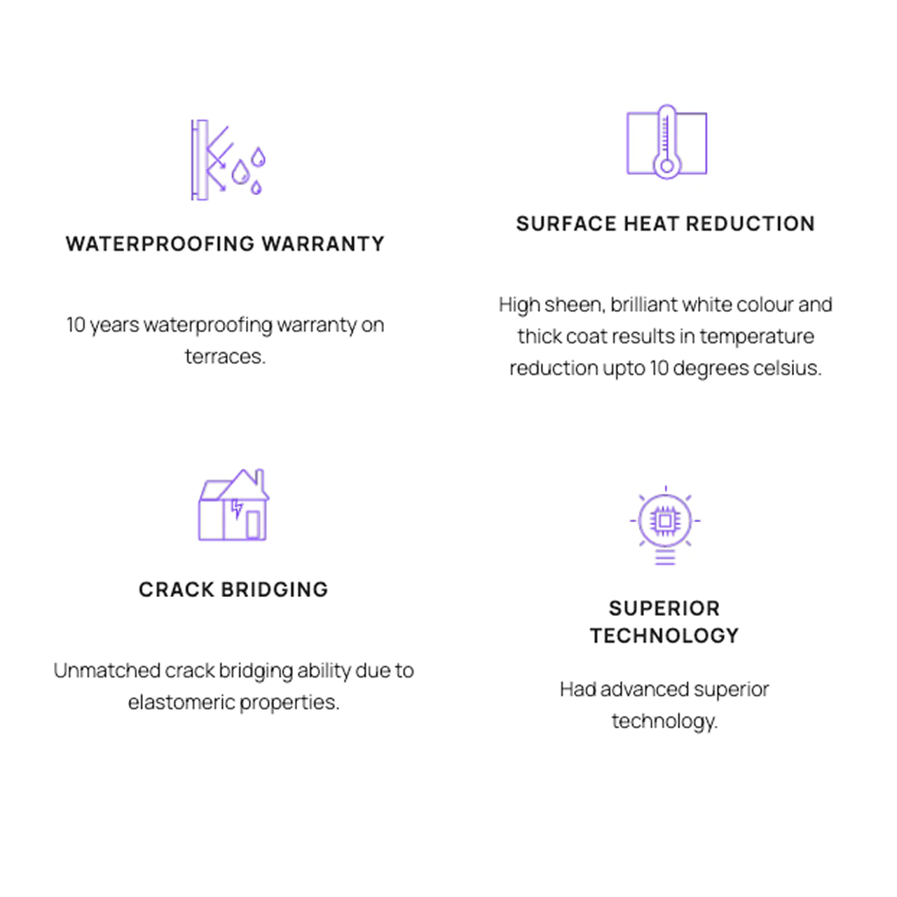 - Surface Heat Reduction: It reflects UV rays effectively, reducing surface temperature by up to 10°C. This lowers your AC bills and keeps interiors comfortable.