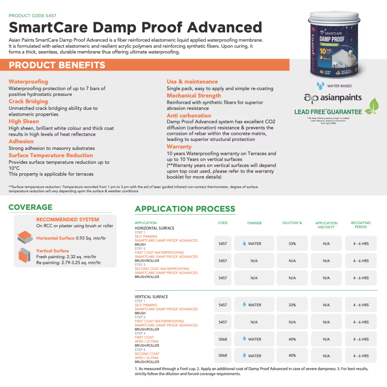 Technical Specifications: Asian Paints SmartCare Damp Proof Advanced