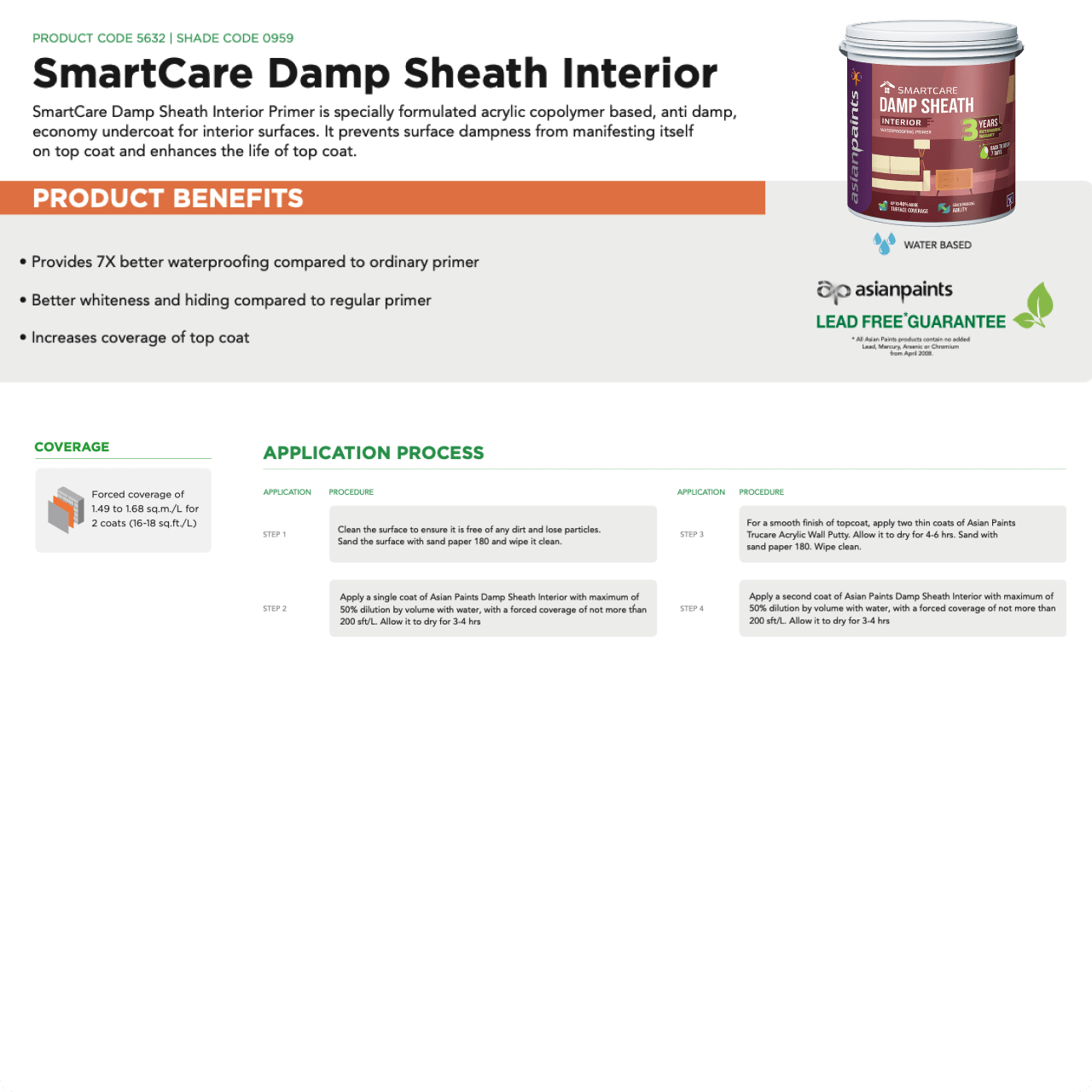 Technical Specifications: Asian Paints SmartCare Damp Sheath Interior