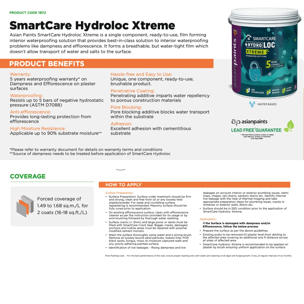 Technical Specifications: Asian Paints SmartCare Hydroloc Xtreme