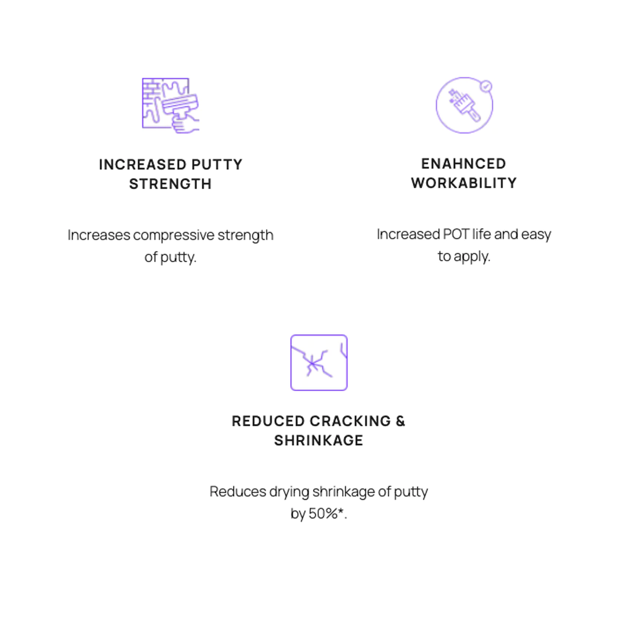 - Enhanced Pot Life: Keeps the mixed putty fresh and workable for longer, reducing wastage during application.
