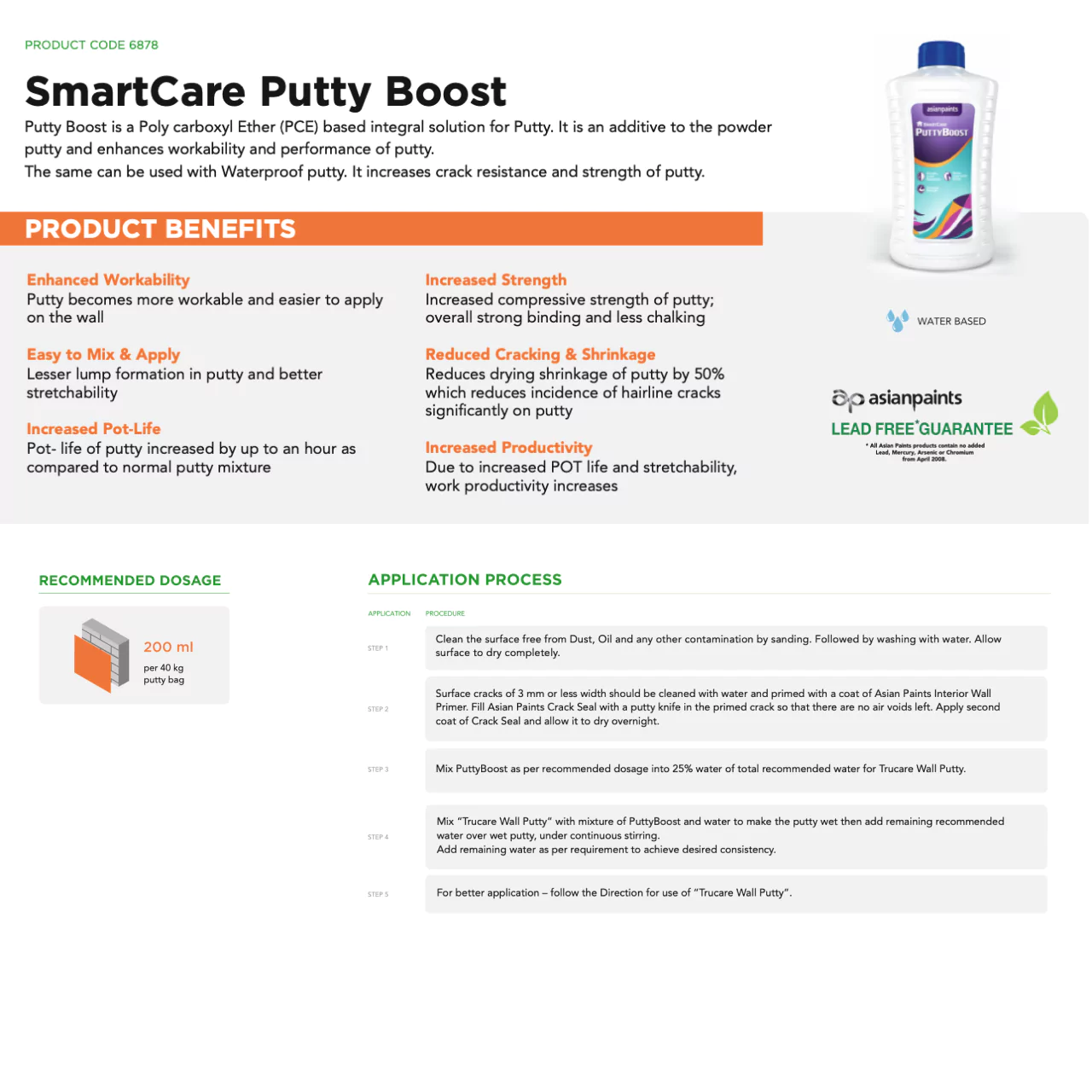 Technical Specifications: Asian Paints SmartCare Putty Boost