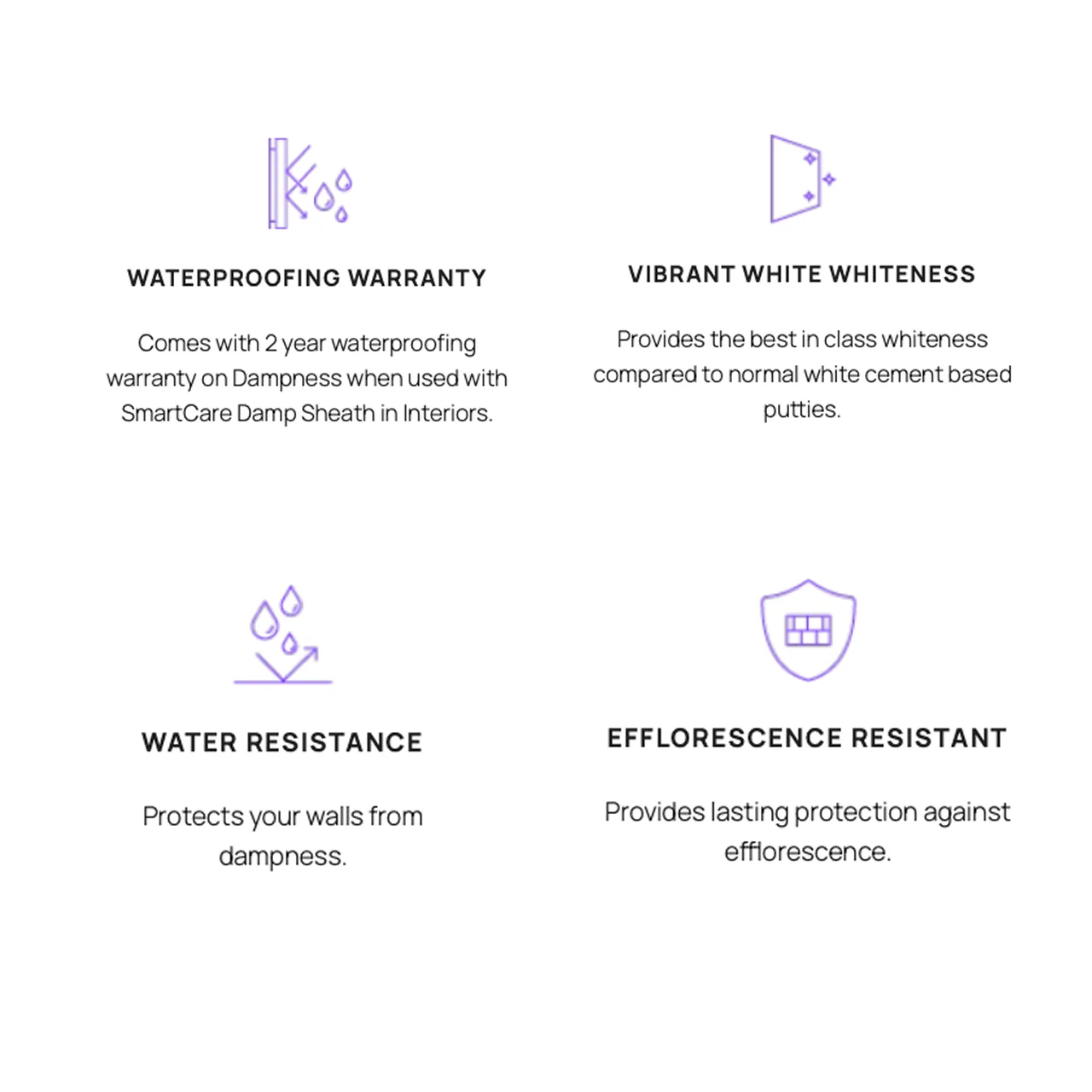Unlike standard acrylic or cement putties that absorb water, Asian Paints SmartCare Wall Putty repels it. Here is why it is the superior choice: