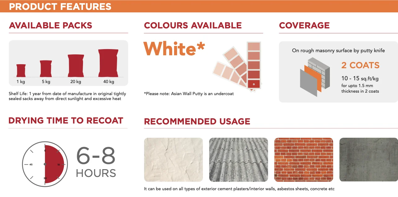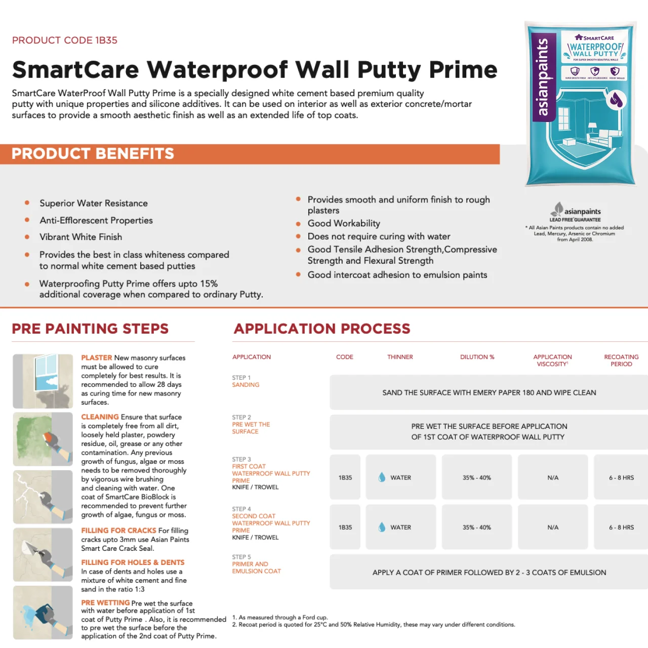 Technical Specifications: Asian Paints SmartCare Wall Putty