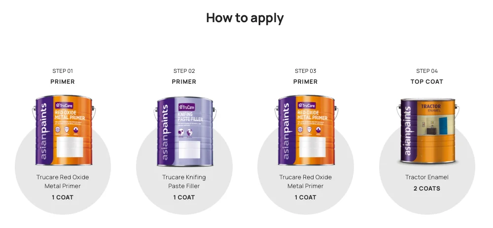 - For Metal: Use TruCare Red Oxide Metal Primer.
