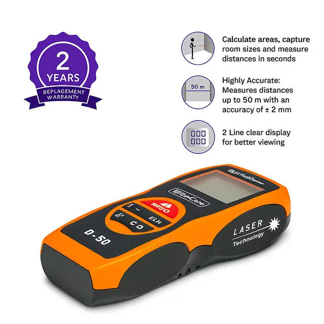 Asian Paints TruCare Laser Distance Meter D-50 is an accurate, compact device capable of measuring distances up to 50 metres. Asian Paints TruCare Laser Distance Meter D-50 computes area, volume, and even height (using the Pythagoras theorem), making it a versatile tool for professionals and DIYers alike.