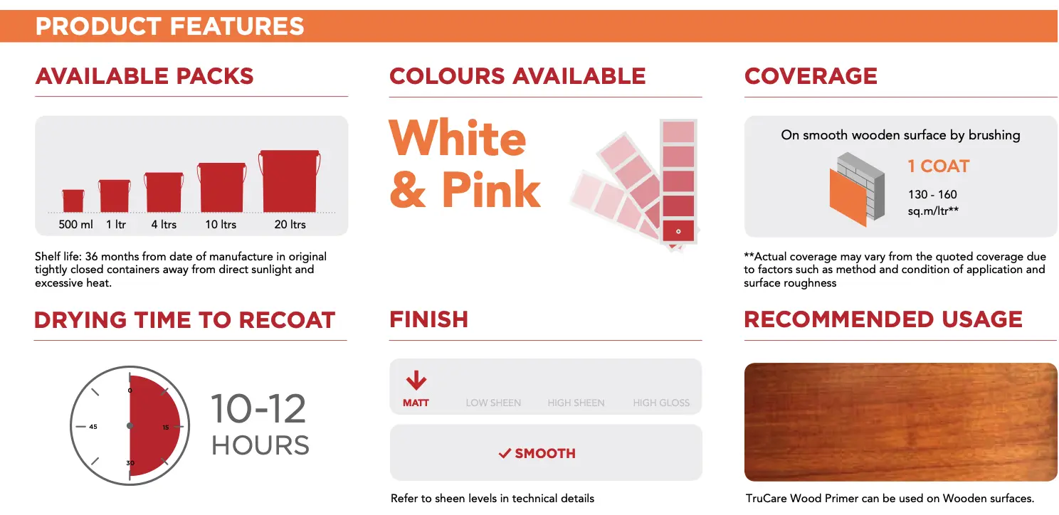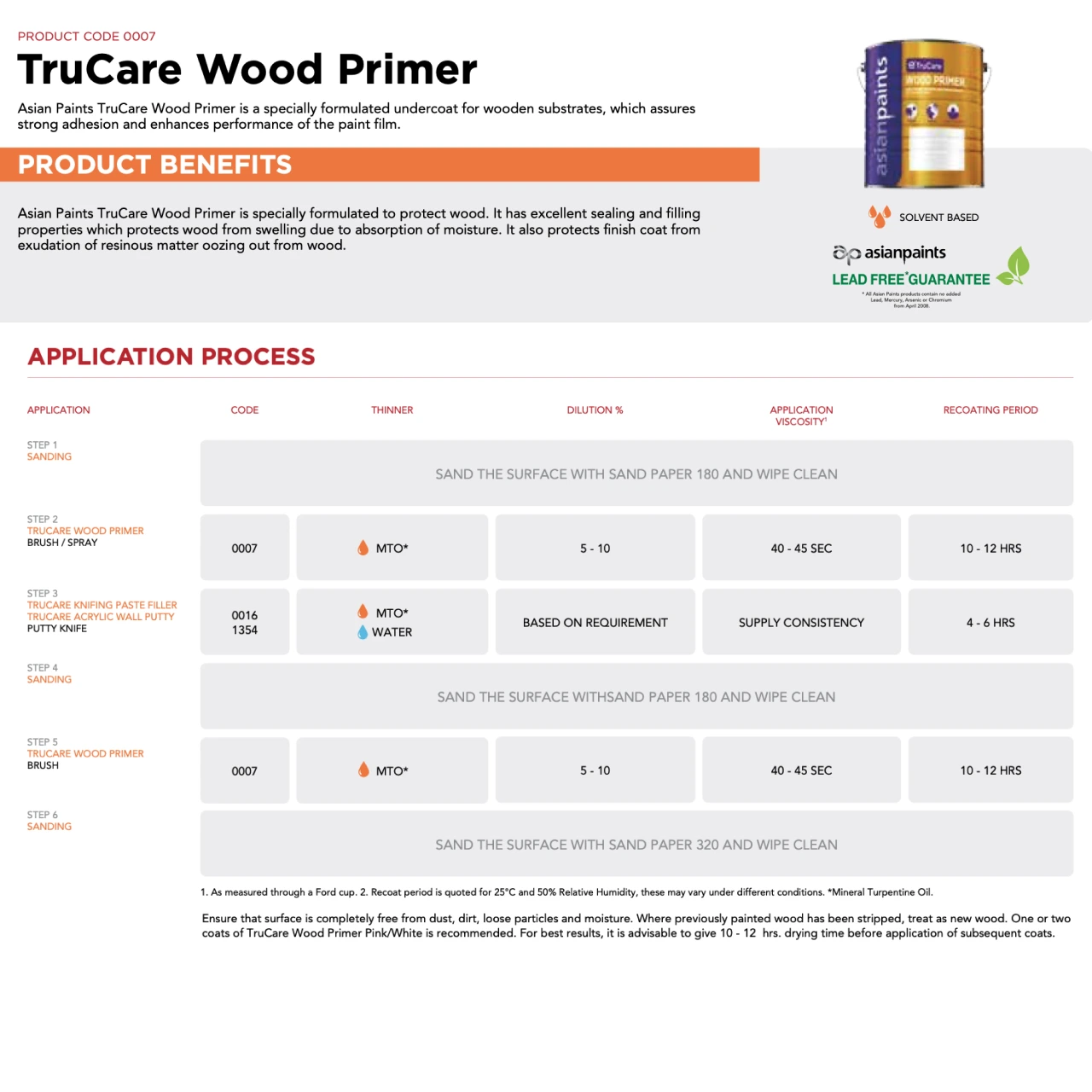 Technical Specifications: Asian Paints TruCare Wood Primer