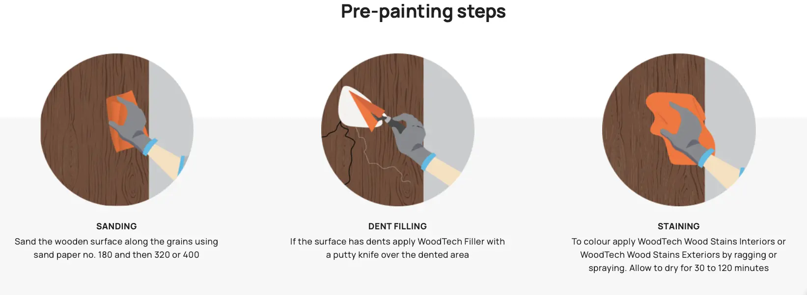 - Surface Preparation: Sand the bare wood with 180-grit sandpaper. Ensure the surface is free of oil, grease, and dust.
