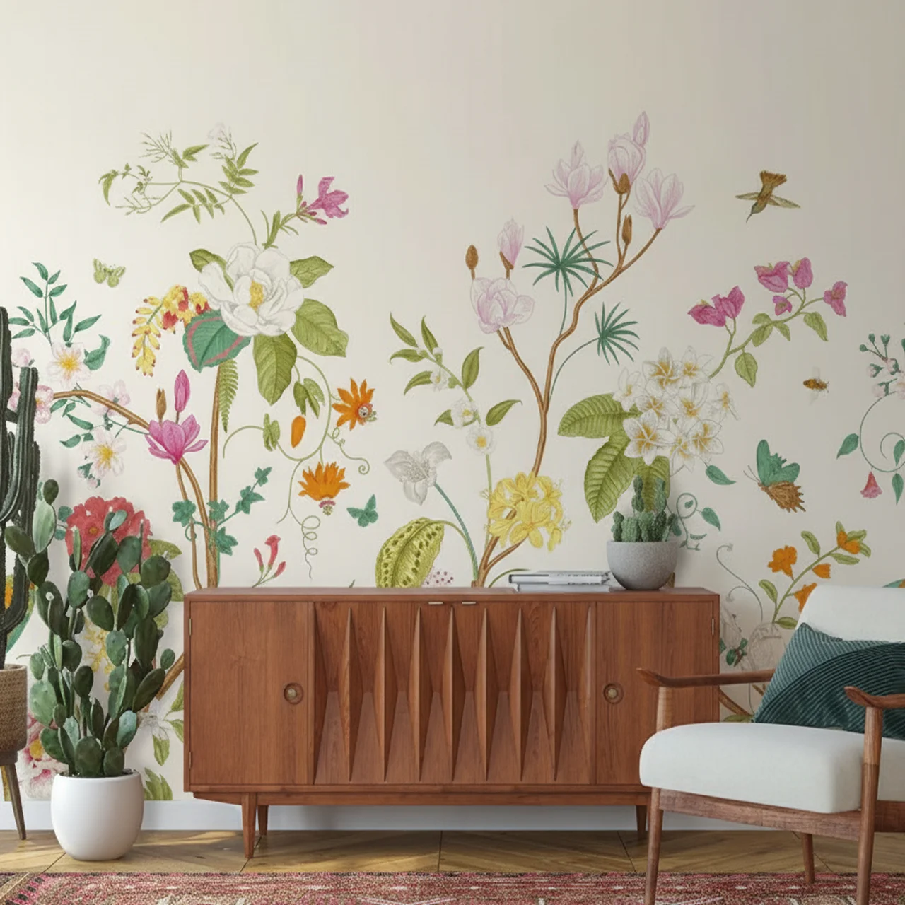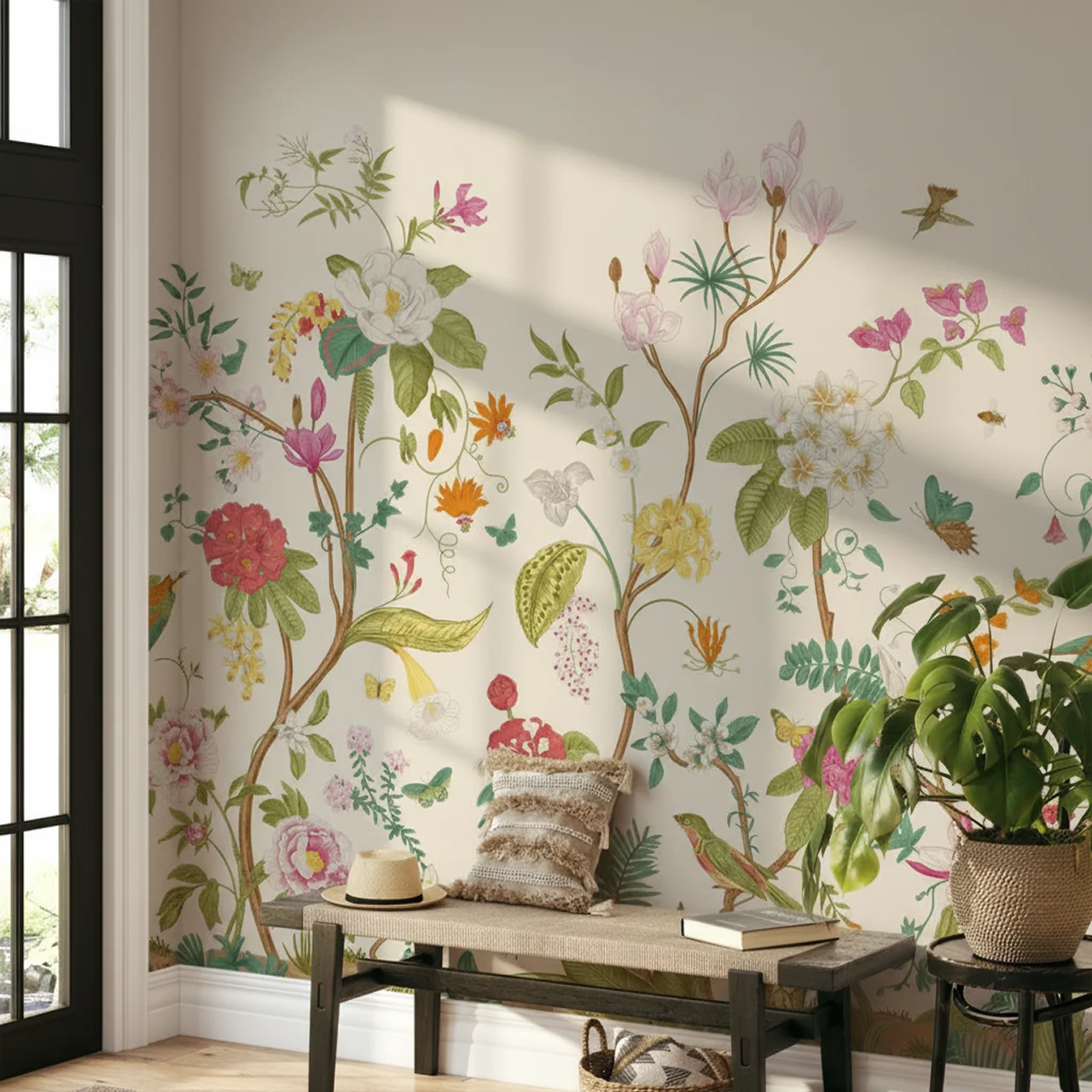 This isn’t just a floral print; it’s a mood lifter. The intricate details and vibrant (yet soothing) colours transform dull walls into a garden view, making your space feel welcoming and alive all year round.