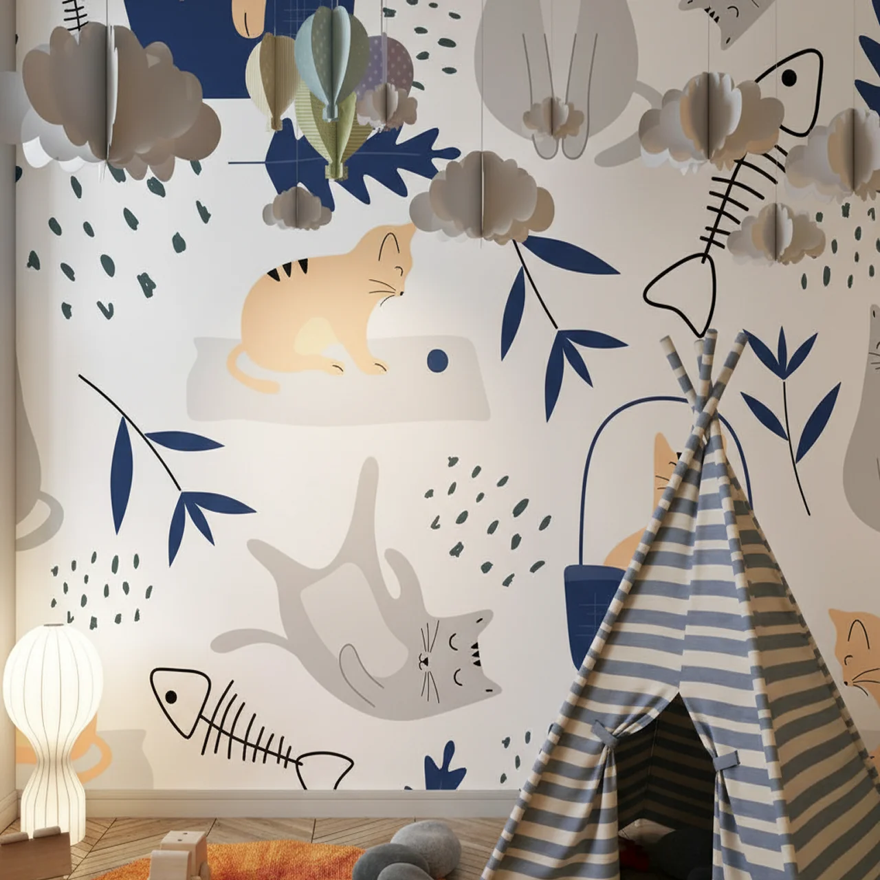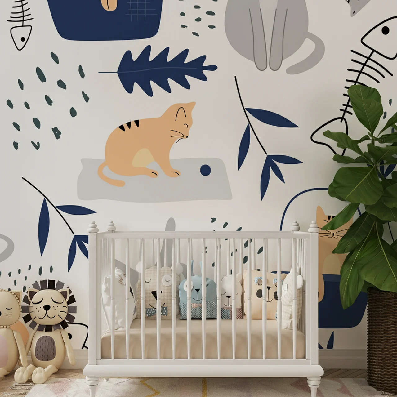 This isn’t just a wallpaper; it’s a piece of modern art for your child. Whether you are decorating a gender-neutral nursery or a toddler’s playroom, this cat theme wallpaper adds a touch of warmth and joy that feels both trendy and timeless.