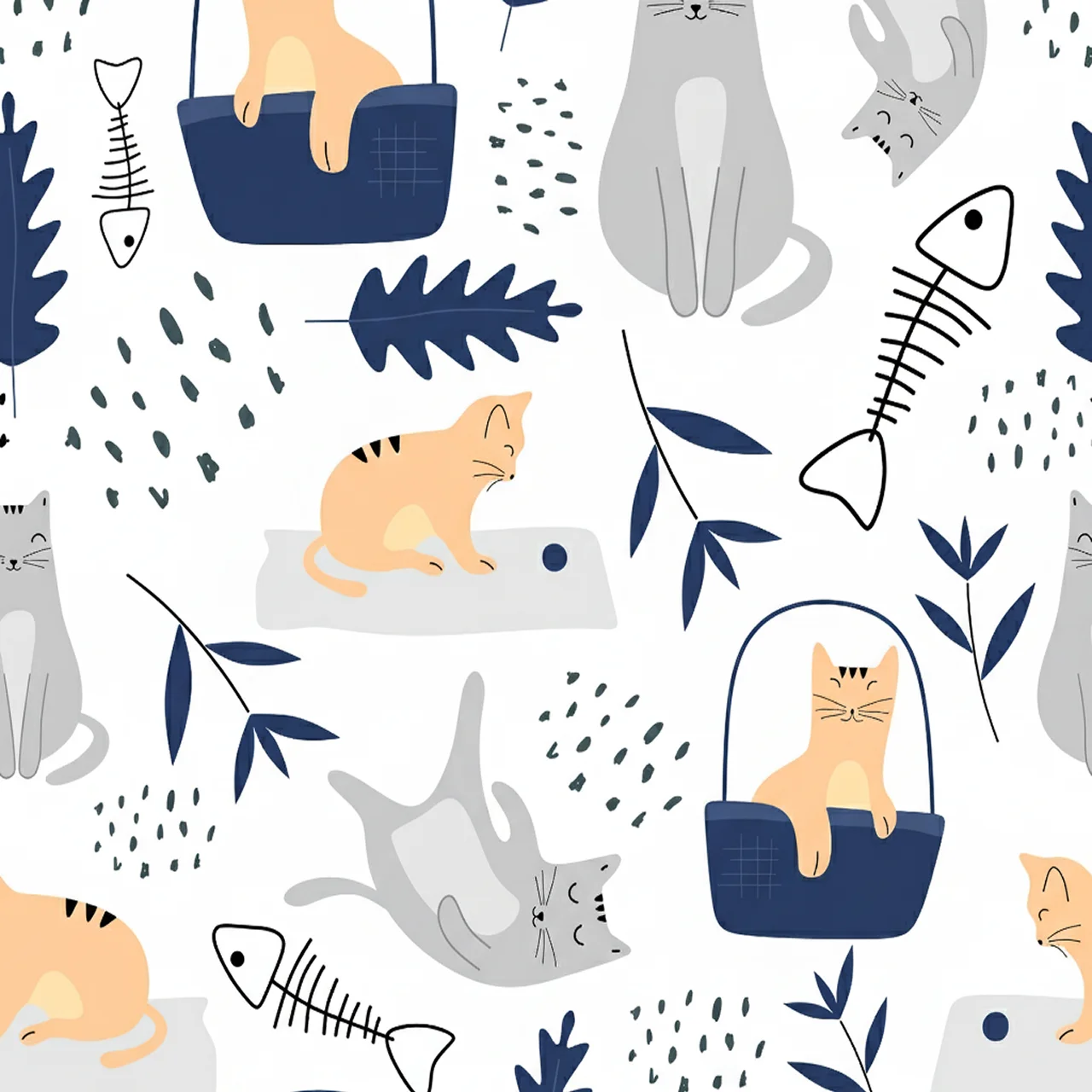 - Product: Cute Scandinavian Cats & Botanical Wallpaper