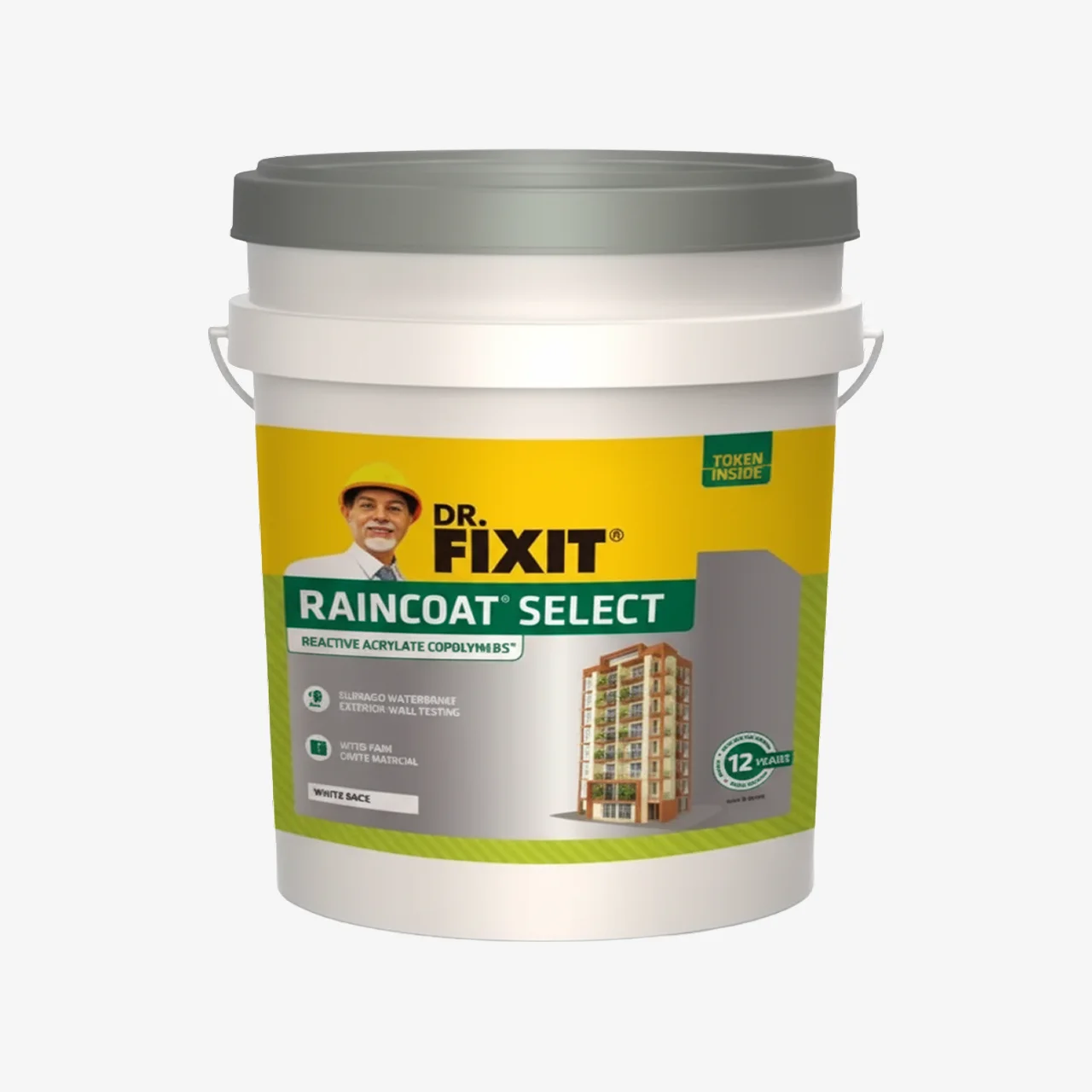 The **Dr. Fixit Raincoat** formula is specifically designed for the Indian climate, providing excellent resistance to heat, UV degradation, and fungal growth. It is an ideal choice for residential and commercial buildings where effective, long-lasting exterior protection is required without the high elasticity of the “Neo” or “Ultima” variants.