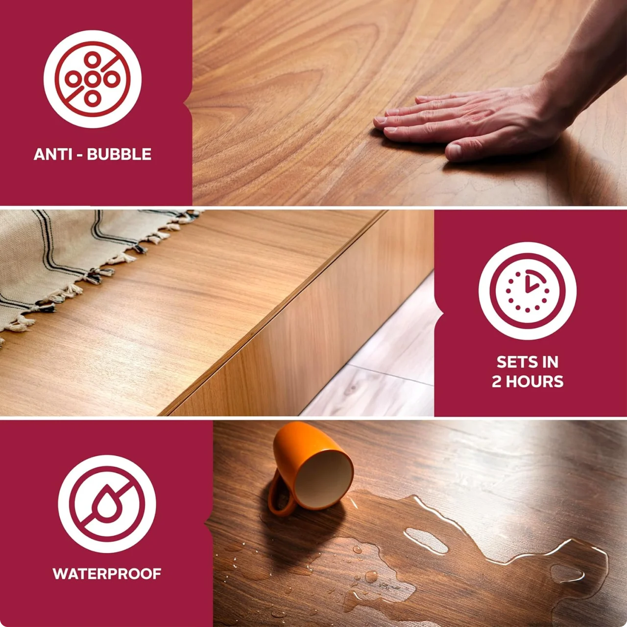 - Anti-Bubble Technology: The formula is designed to allow trapped air to escape during the bonding process, resulting in a perfectly flat surface free of unsightly bubbles and lifts.