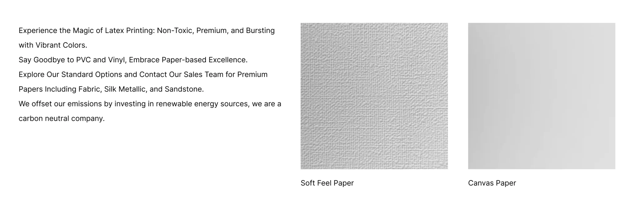 - Printing: HP Latex (Water-Based, Eco-Certified)