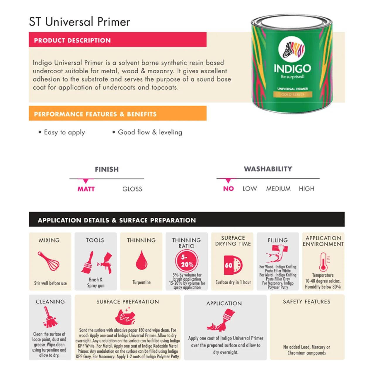 Indigo ST Universal Primer Gold: The Premium Multi-Surface Solution for Metal, Wood, and Walls
