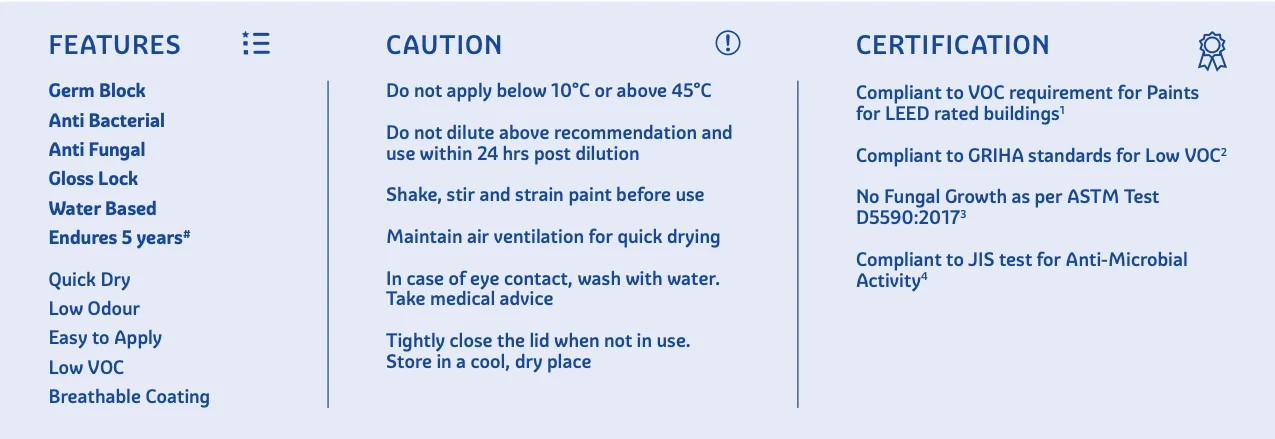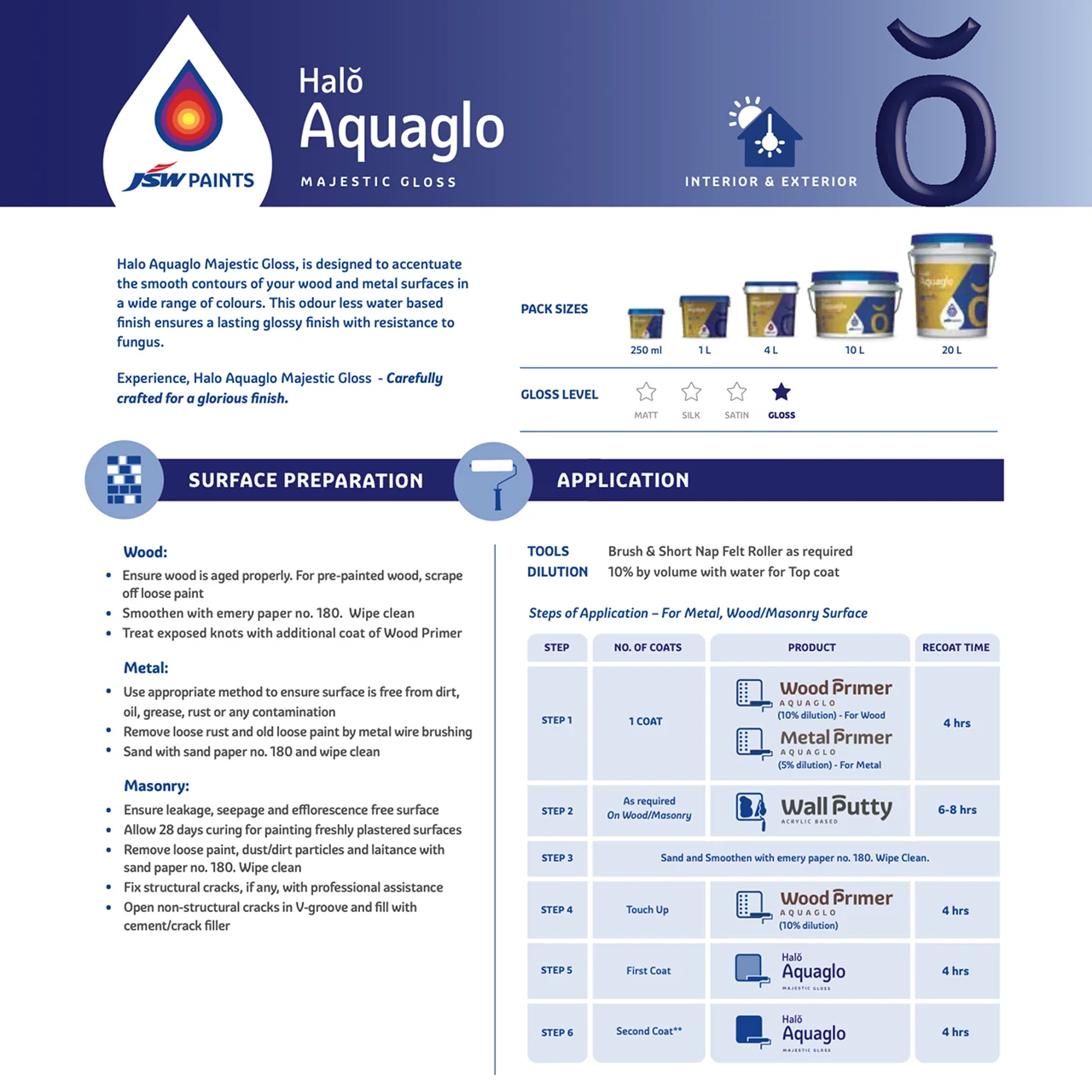 - Water-Based & Low VOC: An eco-friendly alternative to solvent-based paints, it has a low odor and is free from heavy metals, making it safer for use indoors.