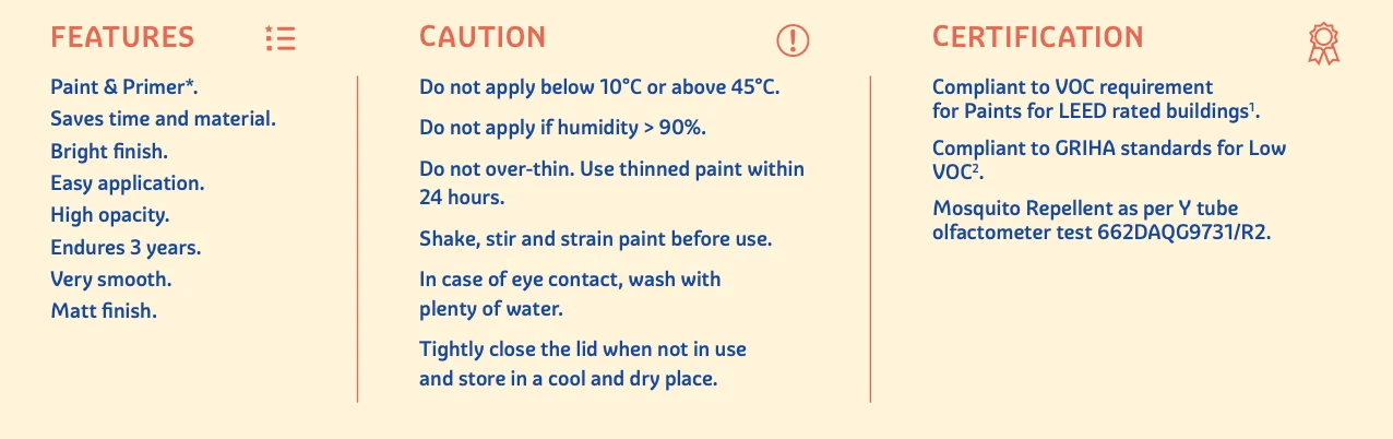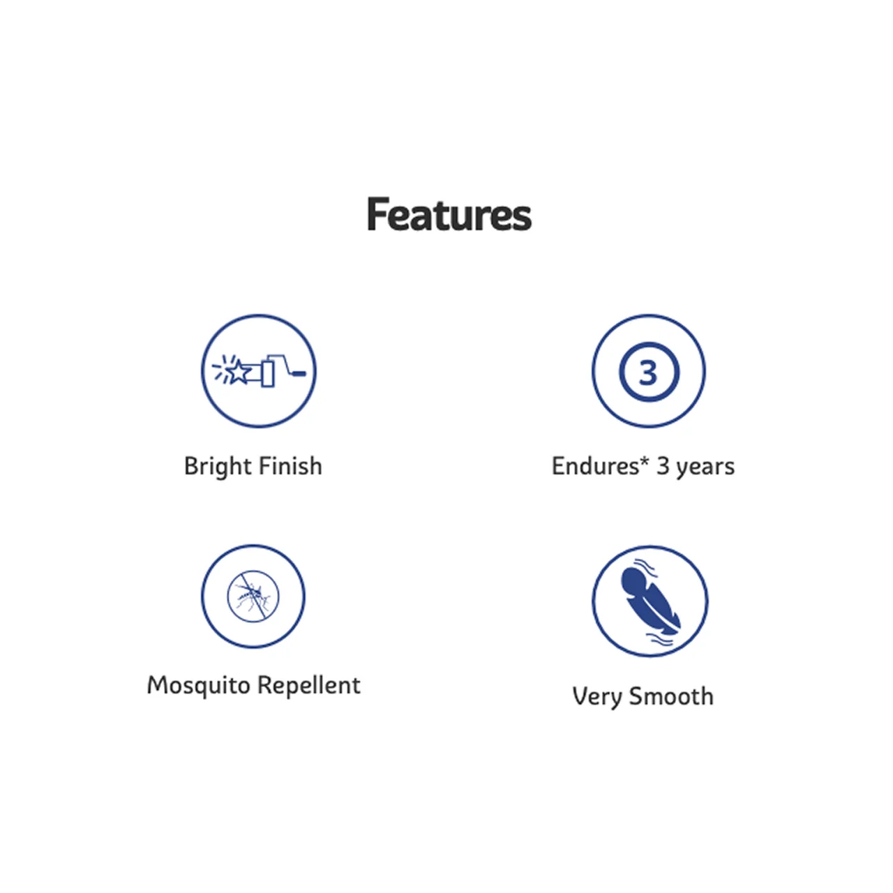 Coverage Approx. 130 – 150 sq. ft/litre/coat (Varies by surface)