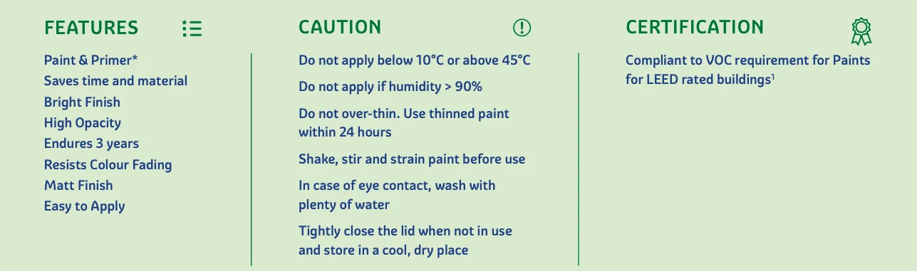 - High Durability: Formulated with advanced polymers to withstand harsh UV rays, heavy monsoons, and temperature fluctuations without chalking.