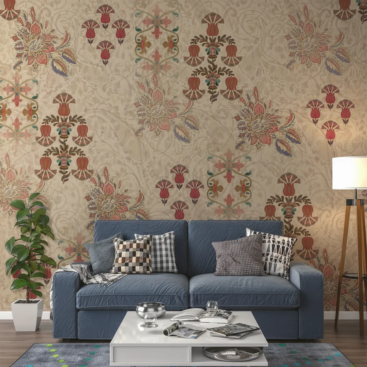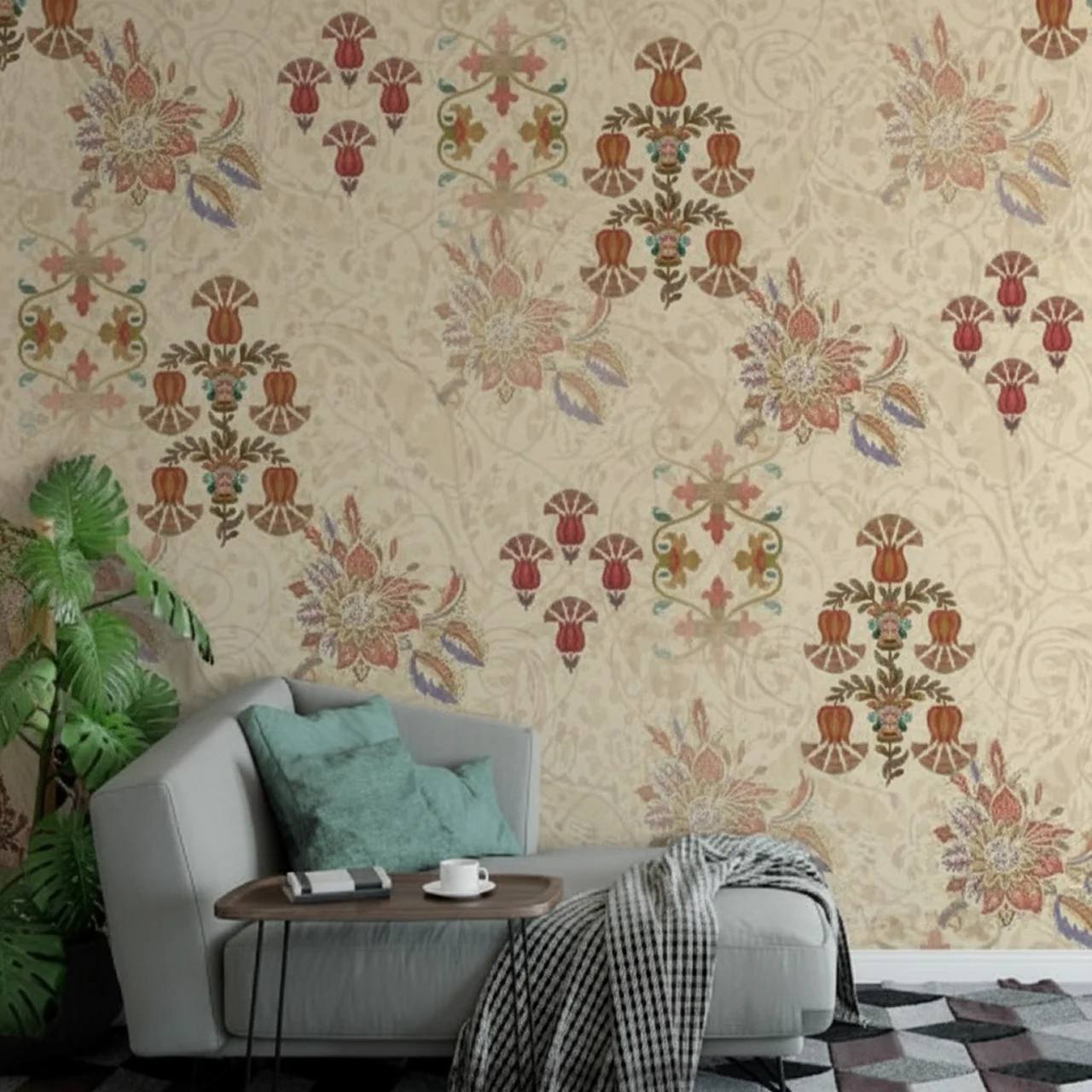 The vintage colour palette creates a “lived-in” royal aesthetic that feels both historic and classy. It is the perfect backdrop for a high-end living room, a grand hallway, or a bedroom that deserves a touch of palaces.