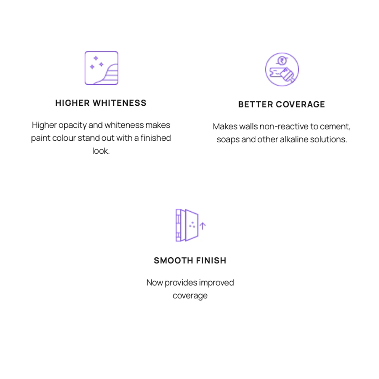 • Good Opacity: It provides sufficient coverage to hide minor patches on the wall, giving a clean white base for your paint.