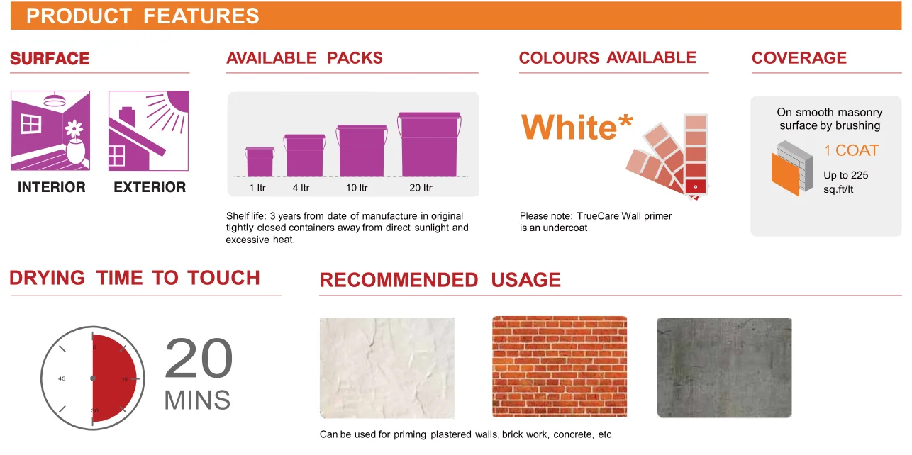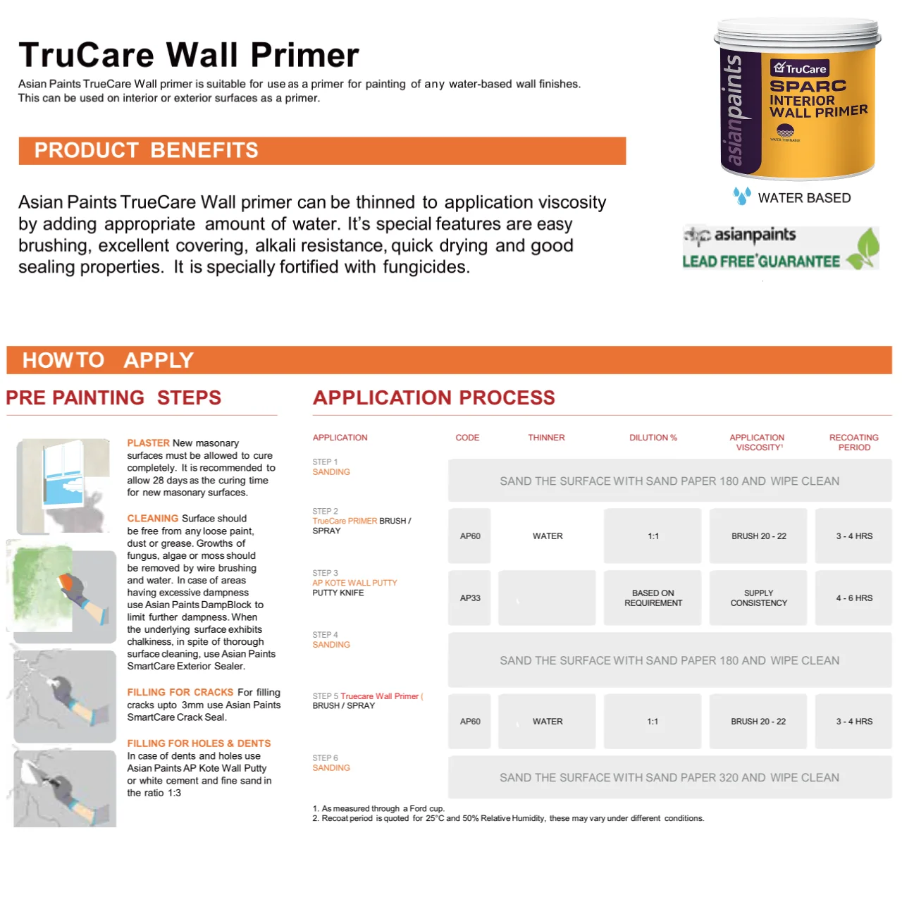 Technical Specifications: Asian Paints TruCare Sparc Primer